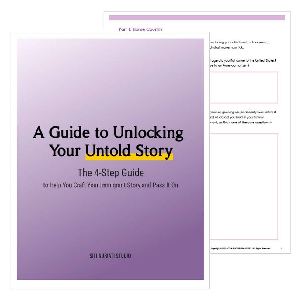This FREE 4-step guide will help you craft your Untold Story in a structured way. Having strategic questions will help you to craft your story from the beginning of your journey, your home country, to your final destination, the USA.