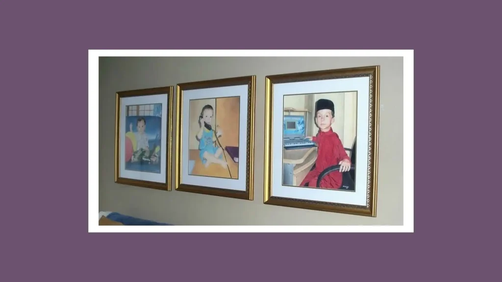 Portraits of our son in colored pencil hung in our apartment in Los Angeles.